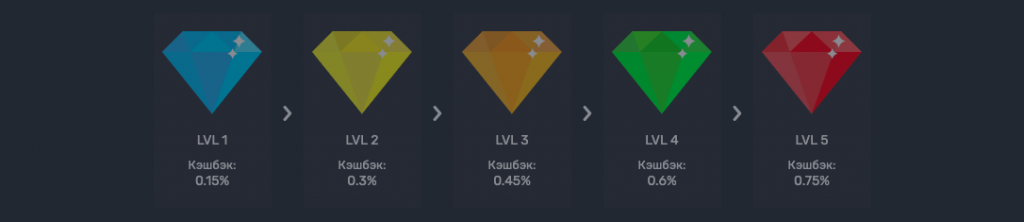 Всего существует 5 VIP-уровней, каждый из которых дает определенные привилегии. Казино решило не изобретать велосипед и внедрило стандартный метод накопления очков в качестве основы для продвижения по VIP-уровням. Некоторые VIP-привилегии сочетаются с расширенным набором бонусов, но есть некоторые аспекты казино, где VIP-членство может быть менее понятным, например, при запросе бесплатного бонуса (у игроков хайроллеров максимальный лимит снятия составляет 5 миллионов рублей в сутки).