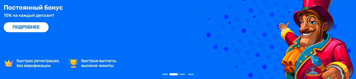 Одна из самых приятных акций из всех топовых онлайн казино — это именно она! Вы можете получать 10% к своему депозиту абсолютно на все свои пополнения счета.